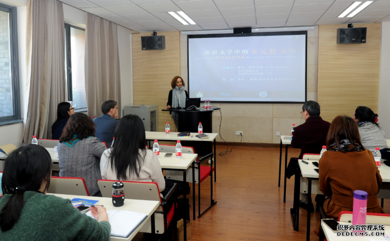 斯利玛尼女士以“法语文学中的多元化书写”为主题进行讲座,并与我校法语系师生展开了一场精彩的对话,讲座由法语系教授张新木主持。斯利马尼在一个多小时的讲座与交流中,就文学的多样性与普遍性、前殖民地国家新一代作家的身份意识、现代社会女性身份与权利、文学如何书写现实等问题发表见解。在斯利玛尼看来,国籍、种族、性别都是表面现象,作家无论其产生与成长环境如何,都不应将自己局限于先天给定的“身份”,作家的责任是在于走出自我、走向他者,通过讲述他者的故事来理解他者,理解全人类的处境,以实现让文学超越个体、变成一个提倡与分享普遍价值的友善空间。作为女性主义者,斯利马尼对女性身份与权利问题也格外关注。她很遗憾地指出,女性长期受性别歧视与偏见之害,即使今日也没有完全摆脱历史与社会加诸女性的固化形象。不过,斯利马尼也指出,时代已经发生变化,女性有权拒绝外界强加的身份,自由地去选择身份,理想状况下,甚至自由地选择拥有多重身份。对实现这种理想状况的可能性的思考正是斯利马尼作品的主题与其写作的动力。作为摩洛哥出生、以法语和阿拉伯语为母语的作家,斯利马尼对法语的多元性特别敏感,她认为并不存在唯一正确的法语,而是存在多种法语,存在多种法语文学。在不同的法语国家,人们使用的法语彼此不同,而法语又是一门吸收性强的语言,会吸收不同民族语言文化尤其是诗歌特征,令语言进一步多样化。在斯利马尼看来,法语的魅力正在于这种“不纯洁性”中,想要统一法语,就是想要令法语干涸,令它失去灵魂。讲座嘉宾、斯利马尼作品中文译者袁筱一教授随后就文学价值、翻译价值等问题与听众进行了分享与互动。